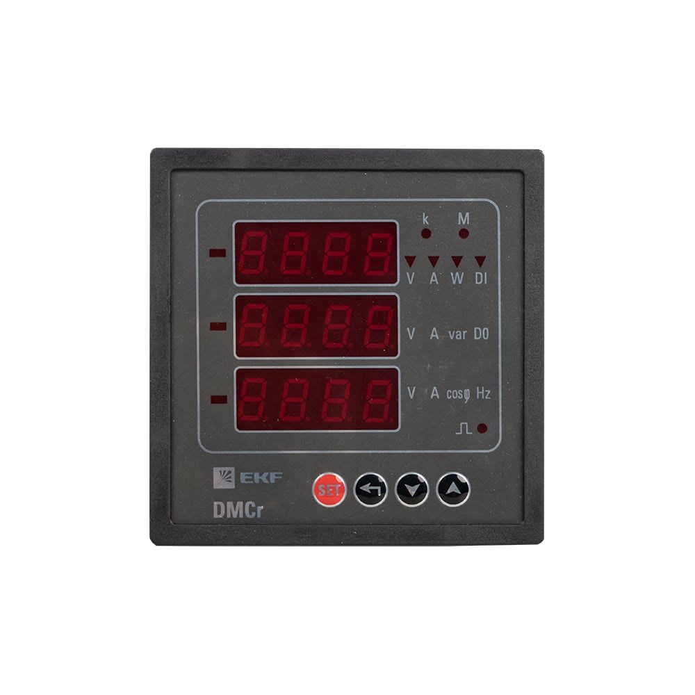 Цифровой комбинированный измерительный прибор EKF DMC-r с интерфейсом RS-485 на панель 96x96 (квадратный вырез) PROxima DMC-963r является цифровым программируемым устройством, предназначенным для измерения параметров трехфазных 3-х или 4-х проводных сетей с симметричной и несимметричной нагрузкой с одновременным отображением измеряемых величин и цифровой передачей данных. Прибор дает возможность управления, анализа и оптимизации работы энергетического оборудования, систем и промышленных цепей. Прибор позволяет измерить следующие параметры: гармоники пиковые значение коэффициенты мощности, частоты коэффициент гармонических искажений усредненная активная и реактивная мощность среднеквадратичные значения тока и напряжения, частоты, активной, реактивной и полной мощности, активной и реактивной энергии в прямом и обратном направлениях Степень защиты: передняя оболочка - IP54, задняя оболочка - IP20.