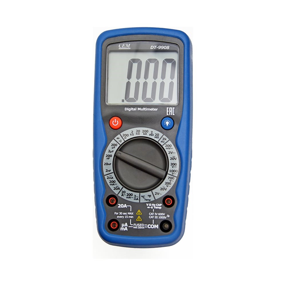 Цифровой мультиметр СЕМ DT-9908 481059 предназначен для диагностики электрических соединений и приборов. Его основные функции - измерение напряжения, тока, сопротивления, емкости, частоты и температуры. Полученные результаты отображаются на дисплее с подсветкой, позволяющей работать даже в слабоосвещенных местах. Благодаря выдвижной ножке прибор можно удобно разместить на столе.