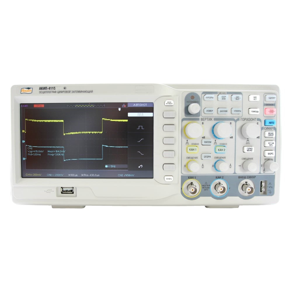 Цифровой осциллограф АКИП 4115/2А позволяет измерять электрические сигналы в цепи и наблюдать за ними. Количество каналов - 2. Модель автоматически измеряет до 32-х различных видов параметров. Интерфейс USB позволяет подключаться к ПК для дистанционного управления и передачи данных. Предусмотрена возможность сохранения до 20 осциллограмм.