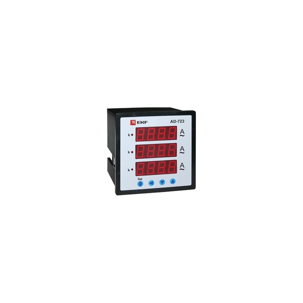 Цифровой трехфазный амперметр EKF AD-723 на панель PROxima SQad-723 выполнен из пластмассы, которая не поддерживает горения. Легко монтируется и имеет возможность настройки под любой трансформатор. Имеет возможность длительной работы без калибровки.