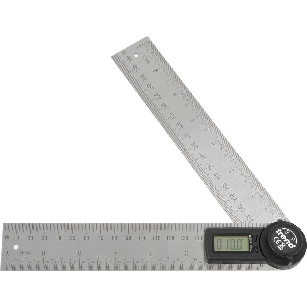 Цифровой угломер Trend 200 мм DAR/200 можно использовать для быстрого и точного расчёта углов. Цифровой дисплей Линейка из нержавеющей стали с метрической/имперской шкалой Функция блокировки Простое управление двумя кнопками Автоматическое отключение через 6 минут Стандарт батарейки CR2032/3В