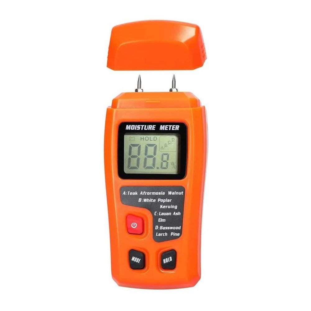 Применение: для измерения процента влаги в древесине для определения влажности в деревообработке и строительстве древесина для измерения : А: Тик, Орех. Афрормозия, Каучуковое дерево, Имбуя, Кокродуа, Ниове Бидинкала, Корк Б: Керуинг. Белый тополь, бук, кедр, тола C: Лауан, ясень, вяз, пихта, клен, дуб падаук, вишня D: липа, лиственница, сосна, береза. Индикатор измерительный Электронный Автоматическая калибровка Имеет 4 калибровочные шкалы Простой режиму работы с кнопками и удобный Материал: АБС-пластик Батарея: батарея 1*9 В ( не входит в комплект) Дисплей: Большой ЖК - дисплей Принцип измерения: Электрическое сопротивление