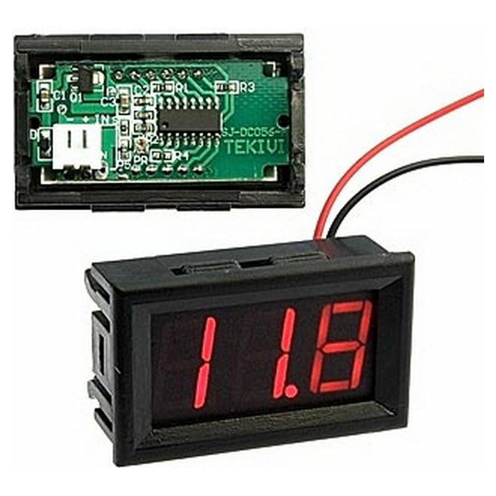 Цифровой вольтметр RUICHI V27T-DL Red 97671 – это измерительный прибор для считывания уровня электрического напряжения. Он подключается параллельно нагрузке или непосредственно к источнику напряжения (U). Единица измерения напряжения — Вольт (V). Дополнительные характеристики Дисплей: 0,56", 3-разрядный LED, красный Потребляемый ток: не более 30 мА Частота обновления показаний - 0,2 с