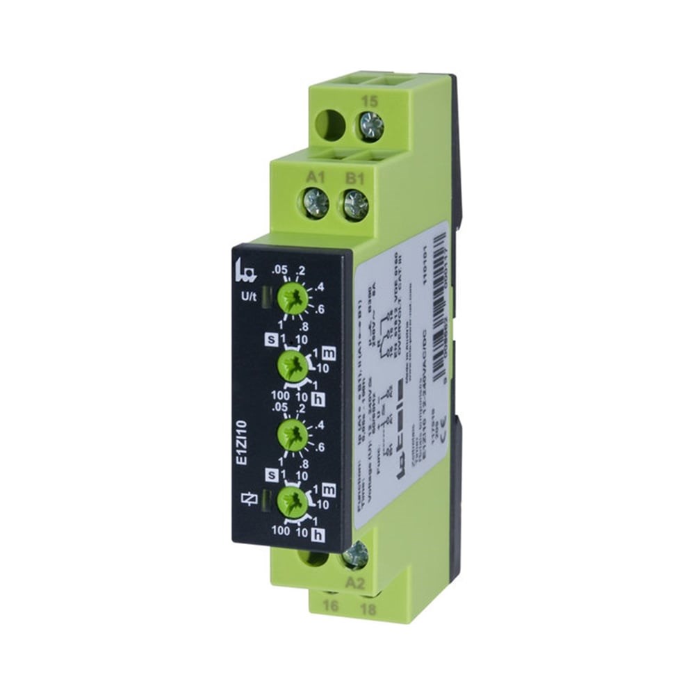 Циклическое реле времени TELE E1ZI10 12-240VAC/DC 110101 может работать в двух режимах: 1. Генератор ассиметричных импульсов начиная с паузы (циклическое реле) (Ip). При подаче напряжения питания U начинается отсчет интервала времени t1 (зеленый LED U/t редко мигает). 2. Генератор ассиметричных импульсов начиная с импульса (циклическое реле) (Ii). При подаче напряжения питания U выходное реле замыкается (желтый LED ВКЛ) и начинается отсчет заданного интервала t1 (зеленый LED U/t редко мигает).