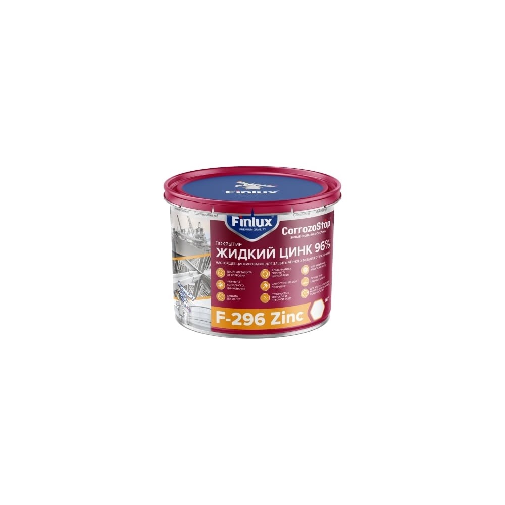 Цинконаполненный грунт-протектор Finlux F-296 жидкий цинк 1 кг 4603783207411 - это инновационное цинконаполненное покрытие (96%) для долговечной антикоррозионной защиты методом "холодного цинкования" металлических конструкций в промышленном и гражданском строительстве, сельском хозяйстве, на объектах ТЭК, в дорожном и транспортном строительстве, гидросооружениях во всех типах коррозионной активности без исключений: включая агрессивные и сильноагрессивные среды. Продукт обладает стойкостью даже к морской и пресной воде! Высокое содержание высококачественного цинкового порошка (96%), многократно замедляет процесс коррозии и защищает окрашенные поверхности на срок до 50-ти лет. А главное метод "холодного цинкования", применяется для защиты надводных частей кораблей! Защита с помощью Finlux F-296 Zinc серии CorrozoStop - это лучшая альтернатива горячего цинкования и Ваша выгода до 20%, в сравнении с покраской обычными красками.