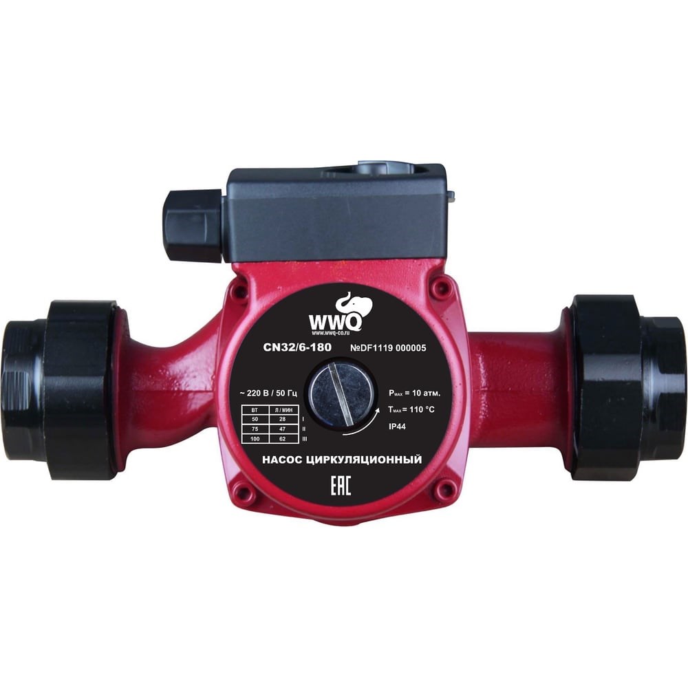 Циркуляционный насос WWQ CN32/6-180 предназначен для циркуляции теплоносителя в однотрубных, двухтрубных системах, отопительных контурах, конструкциях обогрева пола. Имеет три скоростных режима работы. Скорость легко устанавливается поворотом рычага. Конструкция насоса обеспечивает его надежность, экономичность и легкость монтажа. Чугунный корпус обеспечивает долгий срок службы насоса. Для удобства установки в комплекте к насосу идут монтажные гайки и питающий кабель с евровилкой. Дополнительные характеристики: Класс нагревостойкости изоляции: H180° Длина кабеля: 0.9 м Максимальный ток: 0.45 А