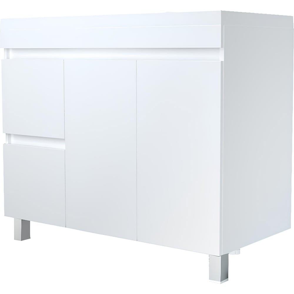 ТНапольная белая глянцевая тумба с бельевой корзиной Cube – элегантное и функциональное решение для хранения и организации в ванную, которое подойдет под различные стилистики. • Материал шкафчика изготовлен из турецкого МДФ, покрытого влагостойкой пленкой ПВХ. Благодаря этому тумба сохранит первозданный вид при условиях повышенной влажности ванной комнаты. • Встроенная бельевая корзина добавляет функциональности этой модели. Обеспечивает комфортное разделение белья и его хранение. • Выдвижные ящики и полки удобны для хранения средств личной гигиены, косметики, полотенец, бытовой химии. • Отсутствие ручек облегчает пространство, не создавая визуальный шум. • Надежная европейская фурнитура обеспечивает плавное закрывание ящиков и дверец. Металлические навесы выдерживает нагрузку до 130 кг. Крепления и сливной регулируемый сифон для модели входят в комплект. Белая тумба без ручек в ванную Cube – идеальный выбор для любителей функциональной мебели. Практичность и эстетика модели будет радовать долгие годыВнимание! Раковина в комплект поставки не входит.К данной тумбе отдельно можно приобрести:Умывальник Анита 1000 - Арт.У23317