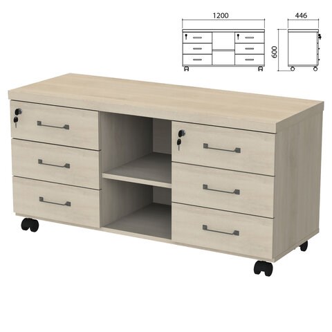 Тумба-креденция "Приоритет" 1200х446х600 мм, 6 ящиков, кронберг, (КОМПЛЕКТ)