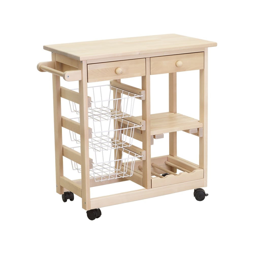 Мобильная, компактная тумба с баром и корзинами выполнена из массива берёзы. Материал качественно обработан и покрыт защитным лаком. Оснащена 3 корзинами, 2 выдвижными ящика и 2 полками, что позволяет вместить много предметов. Благодаря колёсикам и ручке её легко при необходимости передвигать. Дизайн тумбы прост и приятен. Она будет отлично смотреться в современном интерьере. Мебель из массива легко поддается реставрации.