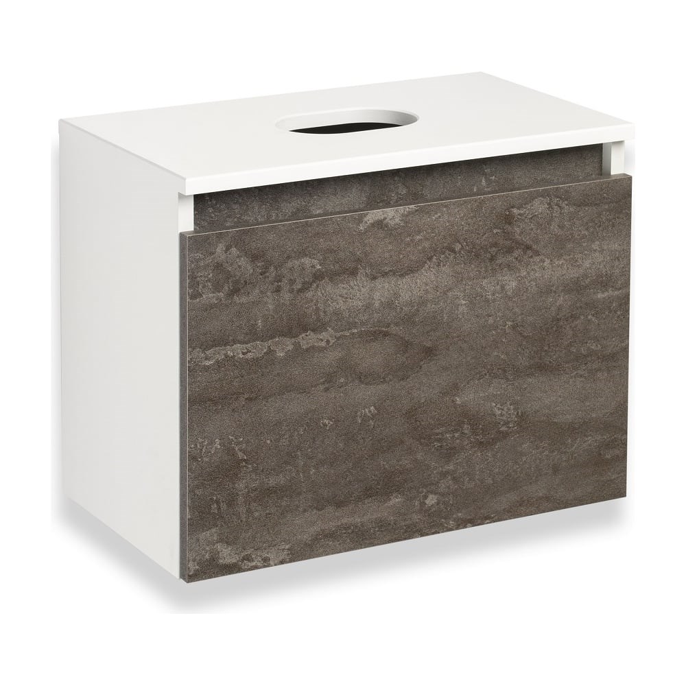 Внимание! Раковина приобретается отдельно. Тумба под раковину в ванную RUNO БАРИ (подвесная) - безупречное сочетание модных тенденций с классическим оформлением ванной комнаты. Тумба под раковину БАРИ оснащена выдвижным ящиком на шариковых направляющих, с системой плавного закрывания. Цвет корпуса классический - белый, при этом цвет фасада в модном цвете – железный камень, идеально впишутся в любой интерьер ванной комнаты. К тумбе для ванной подойдут умывальники на столешницу: «UNO 24» (24х24см) – очень маленькая модель, идеально подходит для ограниченного пространства в небольших помещениях. Строгая квадратная геометрически правильная форма раковины, усиливает идею лаконичности в дизайне, устанавливается на столешницу, накладным методом. «DUE 38» (38х24см) – маленькая модель, идеально подходит для ограниченного пространства в небольших помещениях. Строгая прямоугольная геометрически правильная форма раковины с округлыми углами, усиливает идею лаконичности в дизайне, устанавливается на столешницу, накладным методом.