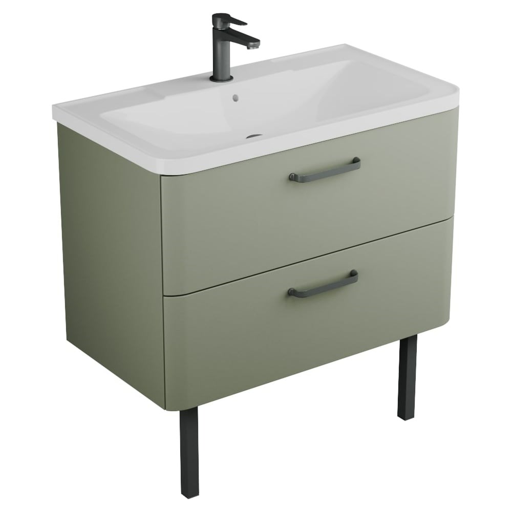 Тумба Veneciana TIBR 80 под умывальник Atlantica 80 олива 58024 дополнительные характеристики: корпус ЛДСП 16 мм, покрытие краска, цвет олива матовый; фасад МДФ 19 мм, покрытие краска, цвет олива матовый; верхний ящик с системой разделения; 2 выдвижных ящика со встроенным доводчиком плавного закрывания, скрытого монтажа; внутренняя отделка цвет дуб зебрано; дополнительно можно приобрести ножки, цвет черный матовый.