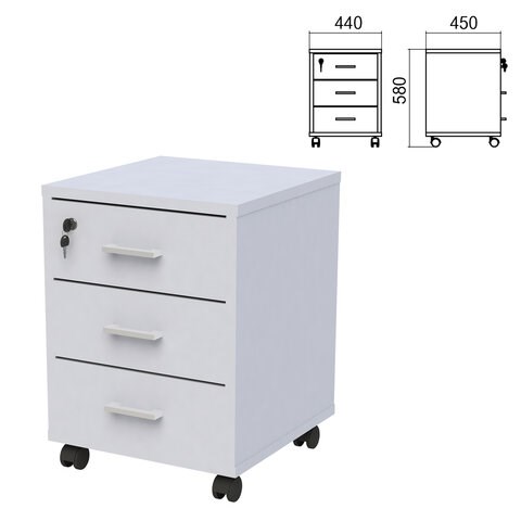 Тумба подкатная "Арго", 440х450х580 мм, 3 ящика, замок, серый