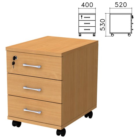 Тумба подкатная "Монолит", 400х520х530 мм, 3 ящика, замок, цвет бук бавария, ТМ25.1