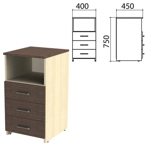 Тумба приставная "Канц", 400х450х750 мм, 3 ящика, полка, цвет дуб молочный/венге (КОМПЛЕКТ)