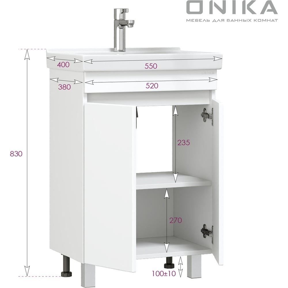 Тумба с раковиной Onika милтон квадро 55 напольная, белая (раковина визит 55)