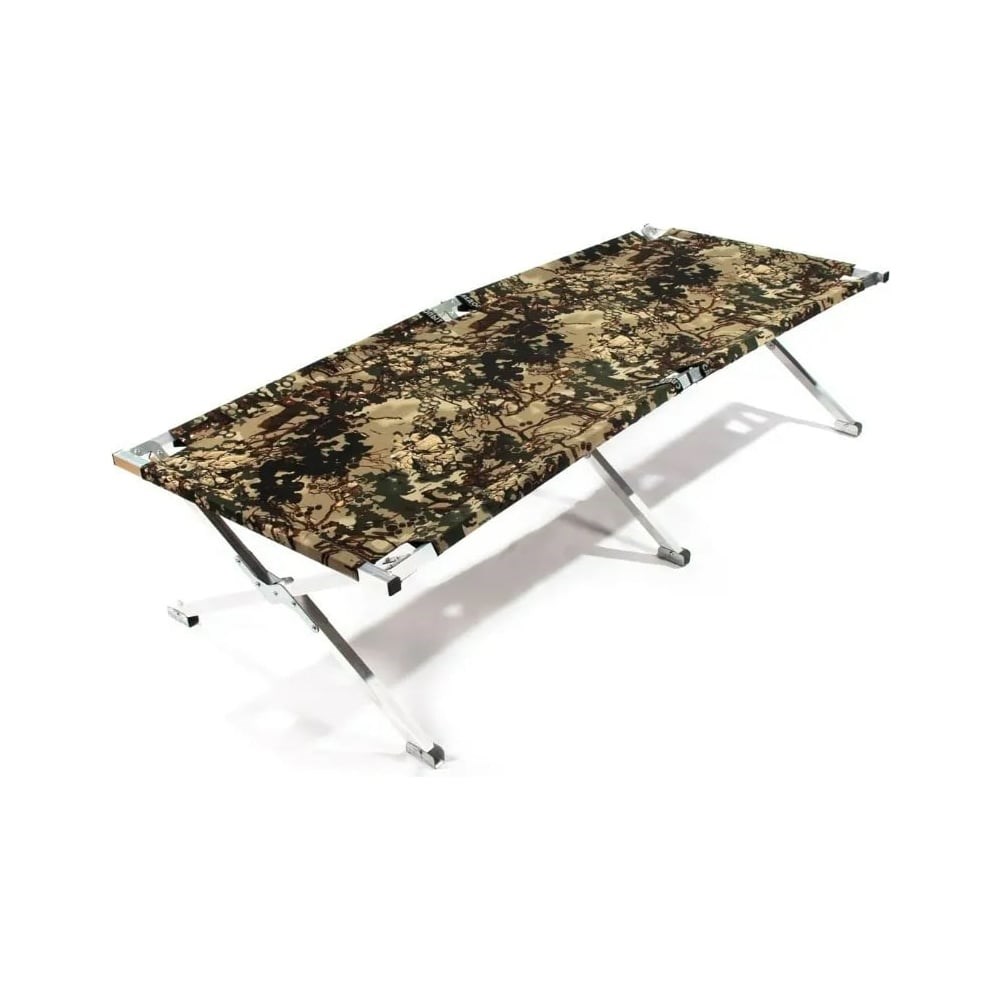 Туристическая раскладушка в чехле Следопыт 1850x750x400 мм, алюминиевая труба, 25x25 мм PF-CB-06AL отлично подойдет для использования на даче, в походе, на рыбалке. Ткань GERDA CAMO - смесовая камуфляжная ткань для охранных структур, охоты, рыбалки и активного отдыха. В состав входят высококачественные волокна хлопка и полиэстера. Предусмотрена водоотталкивающая пропитка для защиты от дождя и ветра. Конструкция раскладушки очень прочная, выдерживает нагрузку до 400 кг.
