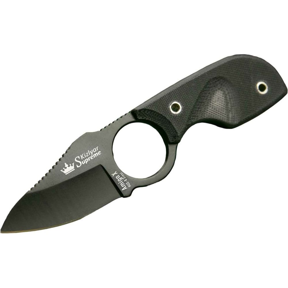 Туристический нож Kizlyar Supreme Amigo X сталь AUS-8, Black Titanium, рукоять из черного G10 4650065056038 изготовлен из высококачественной стали AUS-8, обладающий твердостью 58-59 Роквелл, нож Amigo X с текстурированной рукоятью из G10. Специально разработан для ношения на шее.