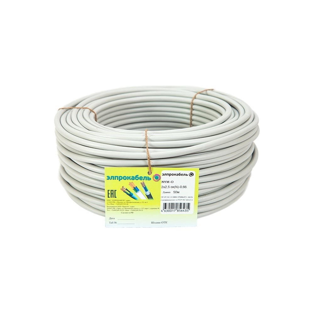 Кабель ЭлПроКабель твёрдый круглый NYM-О 2х2,5 50м ГОСТ 4630017856435
