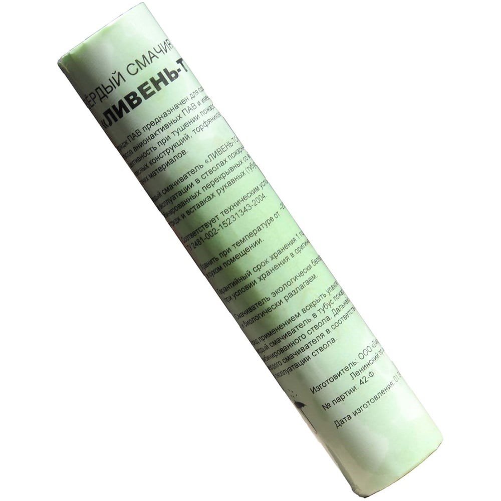 Твердый картридж-смачиватель Лесхозснаб 4631140678192 используется для снижения расхода воды во время тушения пожара. Модель позволяет значительно повысить эффективность тушения пламени путем снижения натяжения воды на поверхности. Картридж имеет цилиндрическую форму. Диаметр изделия - 51 мм, высота - 250 мм. Состав продукта: смесь полиэтилен гликоля и синтетических ПАВ.