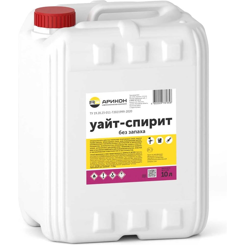 Уайт-спирит без запаха АРИКОН канистра 10 л WHIBZ10 используют в качестве растворителя для финишных ЛКМ, очистки и обезжиривания поверхностей перед окрашиванием, промывки инструментов и лакокрасочного оборудования. Состав со слабым запахом и без механических примесей рекомендован для применения в жилых помещениях с возможностью проветривания. Продукт находит применение во время производства клеев, пластизолей, антисептиков для древесины, косметических средств, красок, жидкостей для розжига и фотокопировальной техники, топливных смесей для зажигалок и ламп. Уайт-спирит подходит для очищения металлов при расконсервации новых автомобилей и для использования в полиграфии, т.к. при ручной и автоматической смывке состав не вызывает набухания офсетной резины и валиков. Для разбавления масляных красок для живописи.