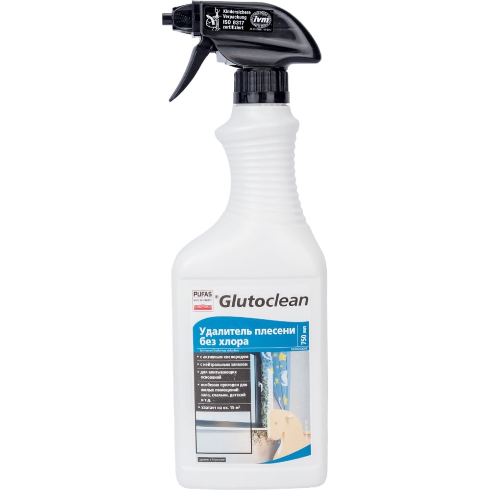 Удалитель плесени без хлора Pufas 0.75л тов-099459 обеспечивает эффективное устранение плесени и грибка. Благодаря бесхлорному составу и отсутствию запаха средство безопасно для применения в жилых помещениях. Для удобства использования поставляется в бутылке с распылителем. С активным кислородом С нейтральным запахом Для впитывающих оснований таких как обои, штукатурка и каменная кладка Особенно пригоден для жилых помещений: зала, спальни, детской и т.д.