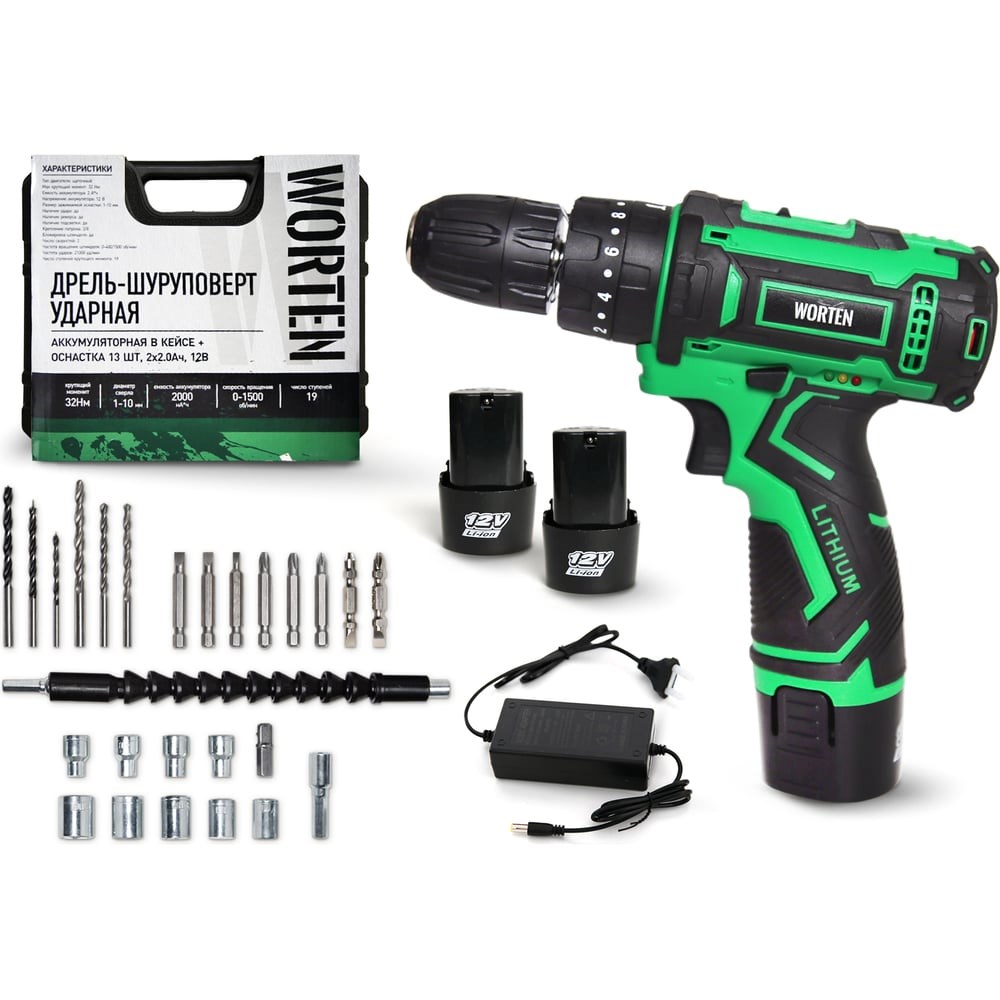Ударная аккумуляторная дрель-шуруповерт WORTEN КА-90000580