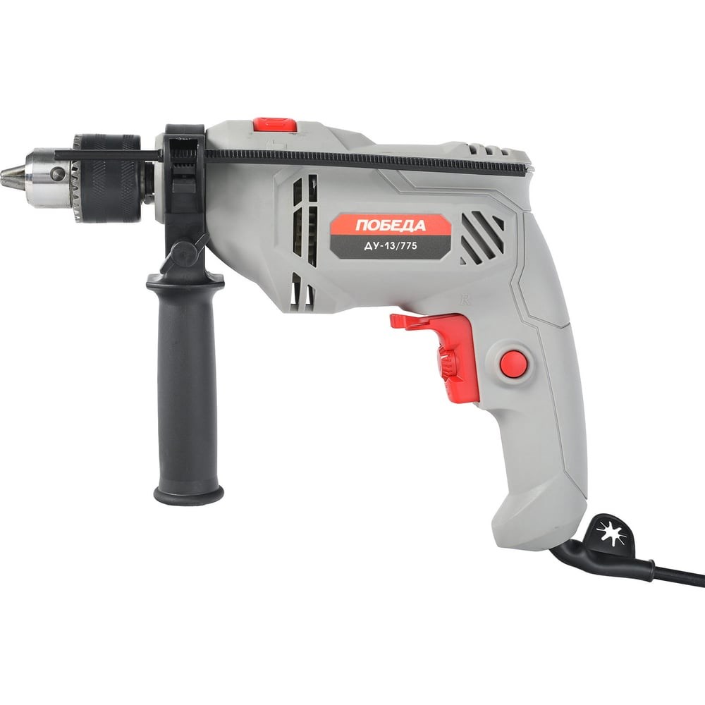 Ударная дрель ПОБЕДА ДУ-13/775 120301775 предназначена для строительных, отделочных, столярных, слесарных работ. Для удобной и комфортной работы предусмотрена рукоятка с прорезиненными вставками. Ключевой патрон. Обеспечивает надежную фиксацию рабочих насадок и рассчитан на интенсивную эксплуатацию. Наличие реверса позволяет легко выворачивать различный крепеж.