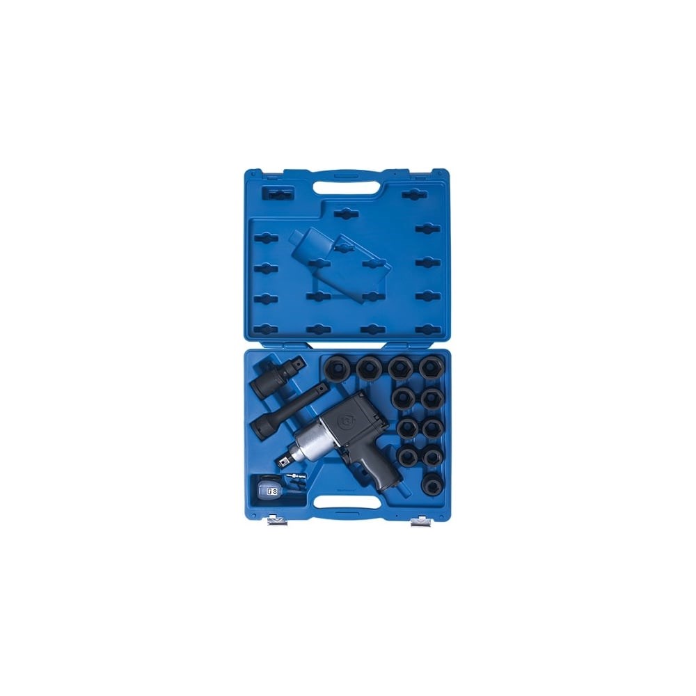 Пневматический ударный гайковерт KING TONY 64114AMP01 используют для закручивания или откручивания крепёжных элементов с размерами под ключ от 17 мм до 60 мм. Предусмотрена обрезиненная рукоять для надежного хвата. Модель имеет надежный ударный механизм Twin Hammer - за один оборот осуществляется два мощных сбалансированных удара. Инструмент поставляется в комплекте с головками, что расширяет его спектр применения.