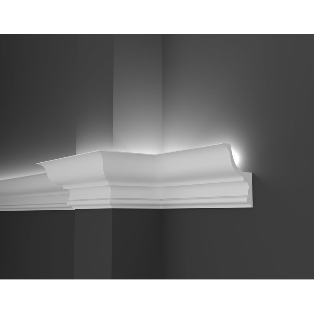 Потолочный карниз Decor-Dizayn ударопрочный влагостойкий под LED подсветку 120Х75Х2000 мм DD509 из полистирола высокой плотности под покраску. Для внутренних работ. Для помещений с обычной и повышенной степенью влажности и загрязнения - гостиные, спальни, детские, кухни, коридоры, ванные комнаты, санузлы, офисы. Легкий монтаж и окрас - клеится на монтажный клей/жидкие гвозди, окрашивается всеми видами красок на водной, акриловой и алкидной основе. Для равномерного окраса карниза рекомендуется использовать краскопульт и/или ворсяные валики. Основные потребительские свойства: 1. Полная влагостойкость - можно использовать в ванной комнате, кухнях, коридорах. 2. Долговечность. 3. Ударопрочность - плотность 500 кг./м3. 4. Легкий монтаж и окрас. 5. Экологичность и безопасность. 6. Современные европейские формы.