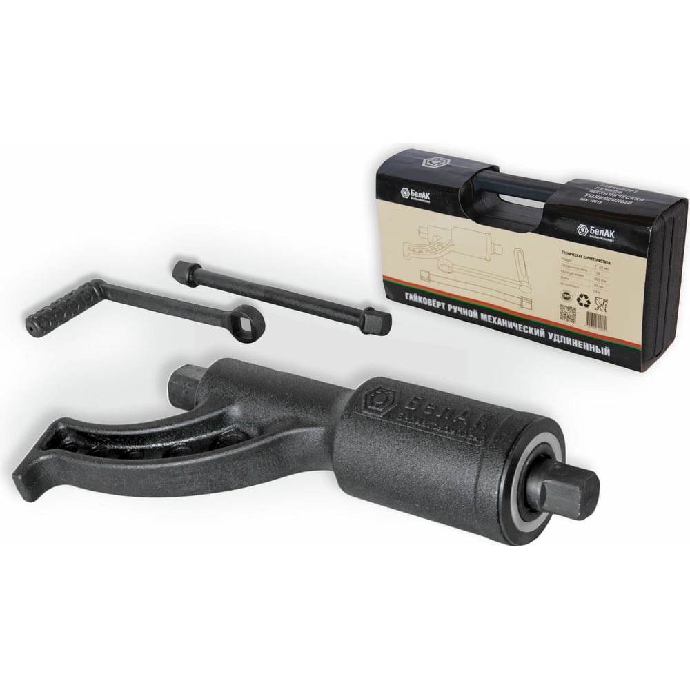 Механический удлиненный гайковерт БелАК БАК.10018 выполнен из высокопрочных материалов, отличается повышенной надежностью и продолжительным сроком службы. Усиление крутящего момента осуществляется за счет планетарного трёхступенчатого редуктора. Фирменный логотип на корпусе, выполненный на этапе отливки, защищает от подделок и является гарантом оригинальности изделия. Данный инструмент служит для закручивания/откручивания тяжело нагруженных болтов и гаек при проведении шиномонтажных работ на грузовых автомобилях. Передаточное число: 1:56, то есть приложенное усилие будет увеличено в 56 раз. Гайковерт обладает светоотражающим пыльником, который защищает от попадания грязевых частиц в механизм редуктора гайковерта. Фирменный логотип на корпусе является гарантом оригинальности изделия. В механизме редуктора гайковерта использованы подшипники, а не втулки скольжения, как у аналогов. В комплект входит надежный морозостойкий и ударопрочный кейс, который обеспечит удобное и безопасное хранение инструмента.