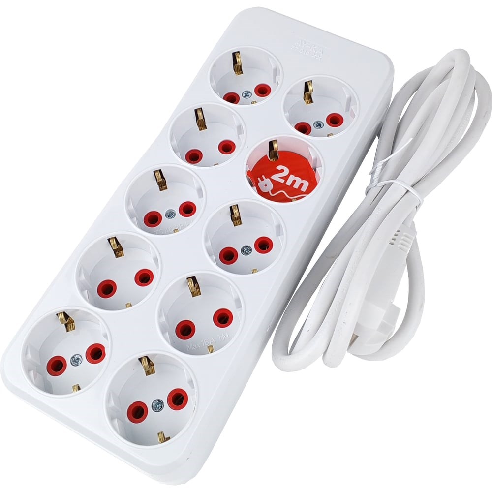 Удлинитель AY-KA 10-местная, 2м. 16А 250В с заземлением, шторки, белый 7701002