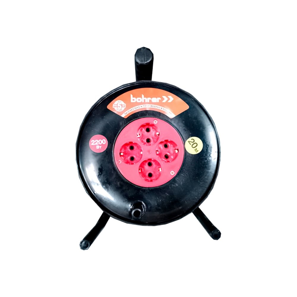 Удлинитель на катушке Bohrer ПВС, 2200 Вт, 20м, без заземления УСЭ-22201