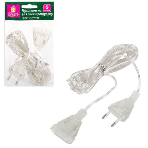 Удлинитель для электрогирлянд 5 м, прозрачный шнур, пакет, ЗОЛОТАЯ СКАЗКА, 591713