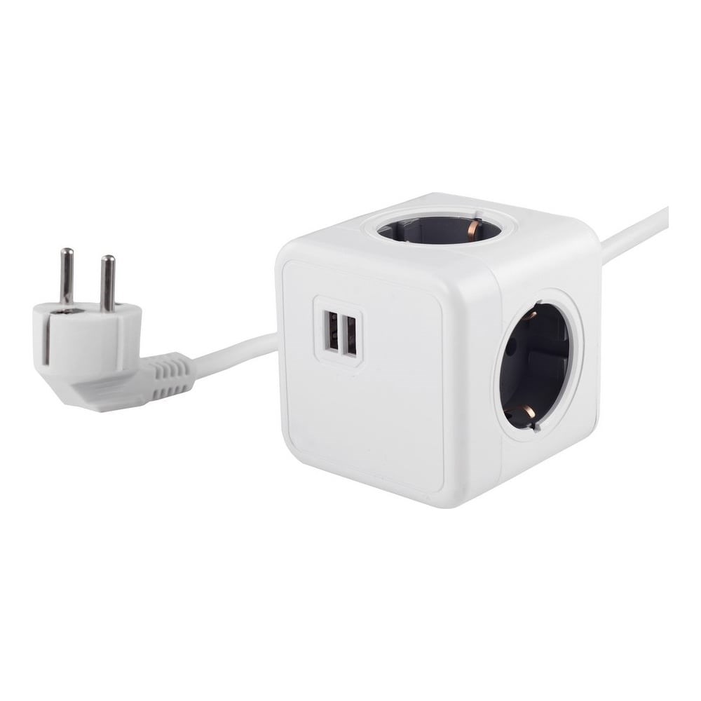 Удлинитель ROCKETSOCKET Cube Extended 4 Euro 16A, 2 USB A с блоком 5В/2.1А, кабель 1,5 м цвет серый GNS1404 поможет решить проблему создания дополнительных розеток в любом необходимом месте. Его можно устанавливать где угодно - на рабочем столе, под столешницей, на стене и в других труднодоступных местах. Двойной USB порт. Удлинитель Cube Extended оснащен двумя мощными портами USB (2.1A), что позволяет заряжать два устройства одновременно, в том числе планшетные компьютеры и смартфоны. Время зарядки будет меньше чем при использовании USB порта на вашем ноутбуке. Удобное крепление. Адаптеры не блокируют друг друга. Уникальный дизайн RocketSocket Cube Extended гарантирует отсутствие блокировки розеток. Размещение проводов. Для всех, кто предпочитает аккуратно размещать провода, RocketSocket Cube Extended включает в себя фиксатор кабеля, что помогает закрепить провод.