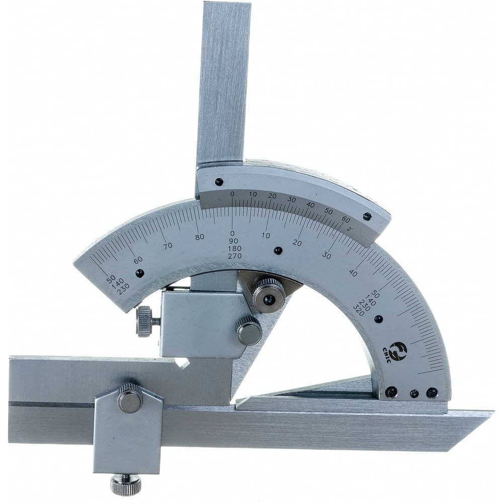Угломер CNIC 0-320 гр 2802-009 32327 предназначен для измерения переднего и заднего углов многолезвийного инструмента с прямолинейными и спиральными зубьями, с равномерным шагом от 5 до 75 мм и с прямолинейным участком по передней и задней граням не менее 1 мм. Точная установка сектора с нанесенной на него шкалой обеспечивается зубчатым зацеплением зубчатого колеса, сопряженного с рукояткой. Средняя наработка на отказ угломера должна быть не менее 20000 условных измерений.