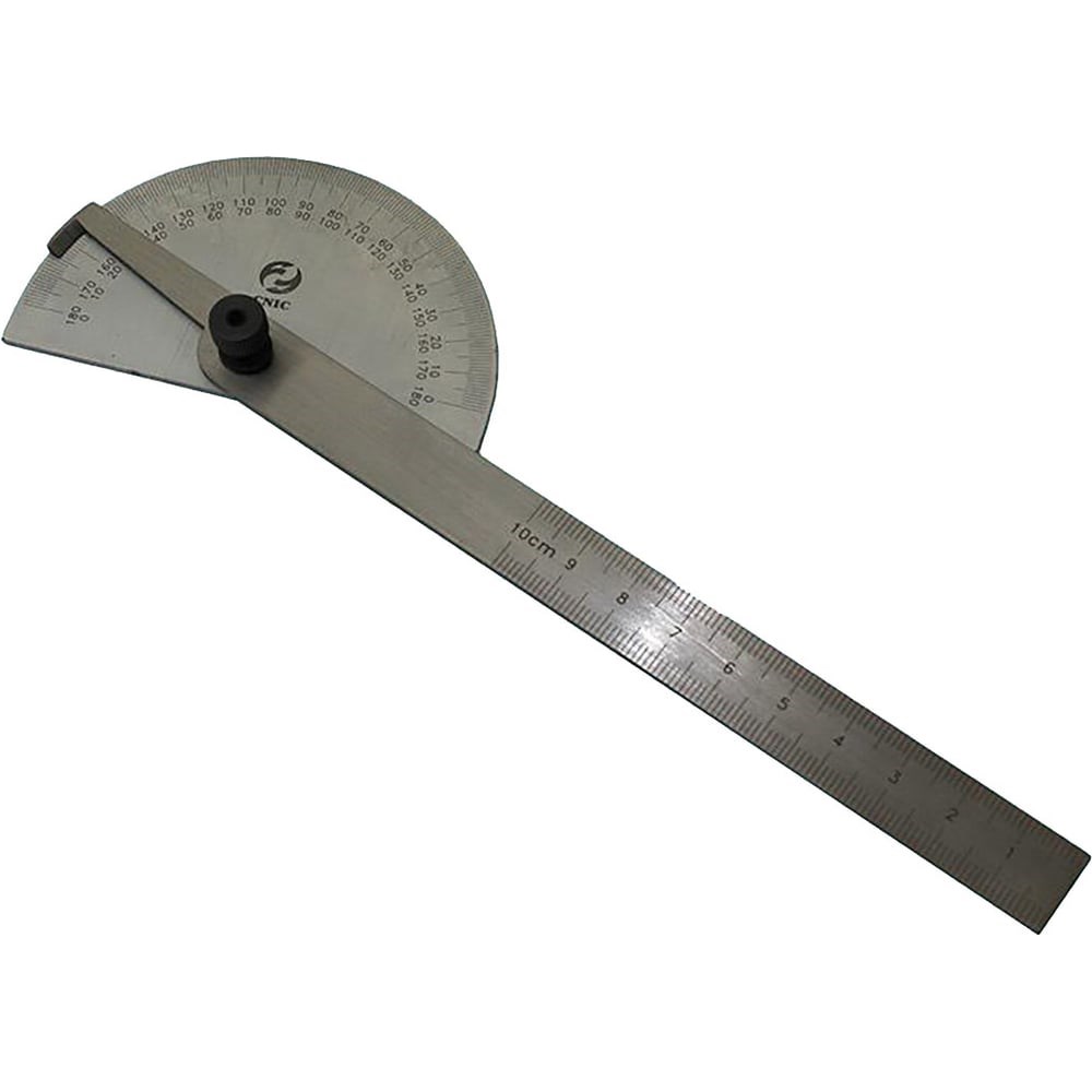 Угломер-транспортир с нониусом CNIC d 85, линейка L150 2808-023 47562 предназначен для измерения и построения углов при проведении разметочных работ на плоских поверхностях, а также для контрольных замеров углов плоских деталей и заготовок. Область применения – слесарные, разметочные и ремонтные работы. Цена деления шкалы транспортира составляет 1°. Пределы измерения углов: наружных и внутренних от 10° до 170°. Средняя наработка на отказ угломера должна быть не менее 20000 условных измерений.