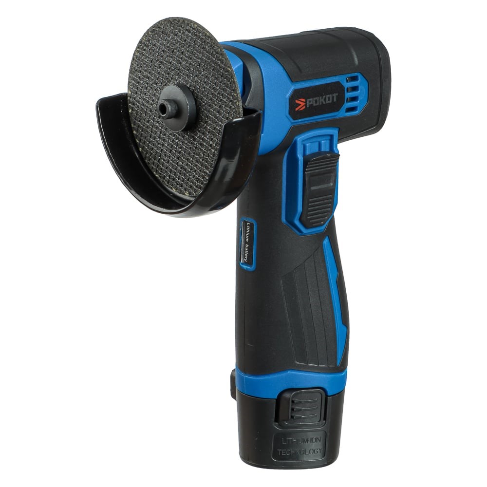 Угловая шлифовальная машина РОКОТ аккумуляторная мини, 12 В – это компактный электроинструмент, предназначенный для полировки, шлифовки, резки и других типов обработки различных поверхностей. Мощность – 450 Вт. Диаметр диска – 75 мм. Скорость вращения – 19500 об/мин. Инструмент надежный, производительный, абсолютно автономный, удобно лежит в руке и имеет невысокий вес. Защитный кожух предотвращает попадание мелких частиц в глаза, а также защищает руки от повреждений в случае отлома диска. Емкость аккумулятора 2.0 А*ч. Батарея быстро заряжается. В комплекте идет шестигранный ключ.