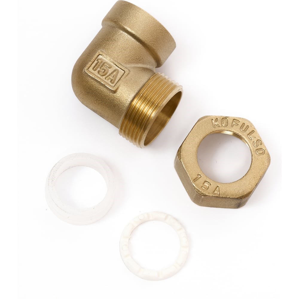 Муфта латунная угловая "труба-внутренняя резьба" BL15 - 1 шт.Муфта латунная угловая "труба-внутренняя резьба" BL15 - это надёжное соединительное решение углового типа для гофрированных труб из нержавеющей стали диаметром 15 мм. Муфта BL15 предназначена для углового соединения гофрированных труб 15 мм с наружной резьбой ½ дюйма, сделана из сплава латуни ЛС59, выдерживает давление до 16 бар и используется в системах водоснабжения, пожаротушения, климатического и компрессорного оборудования.