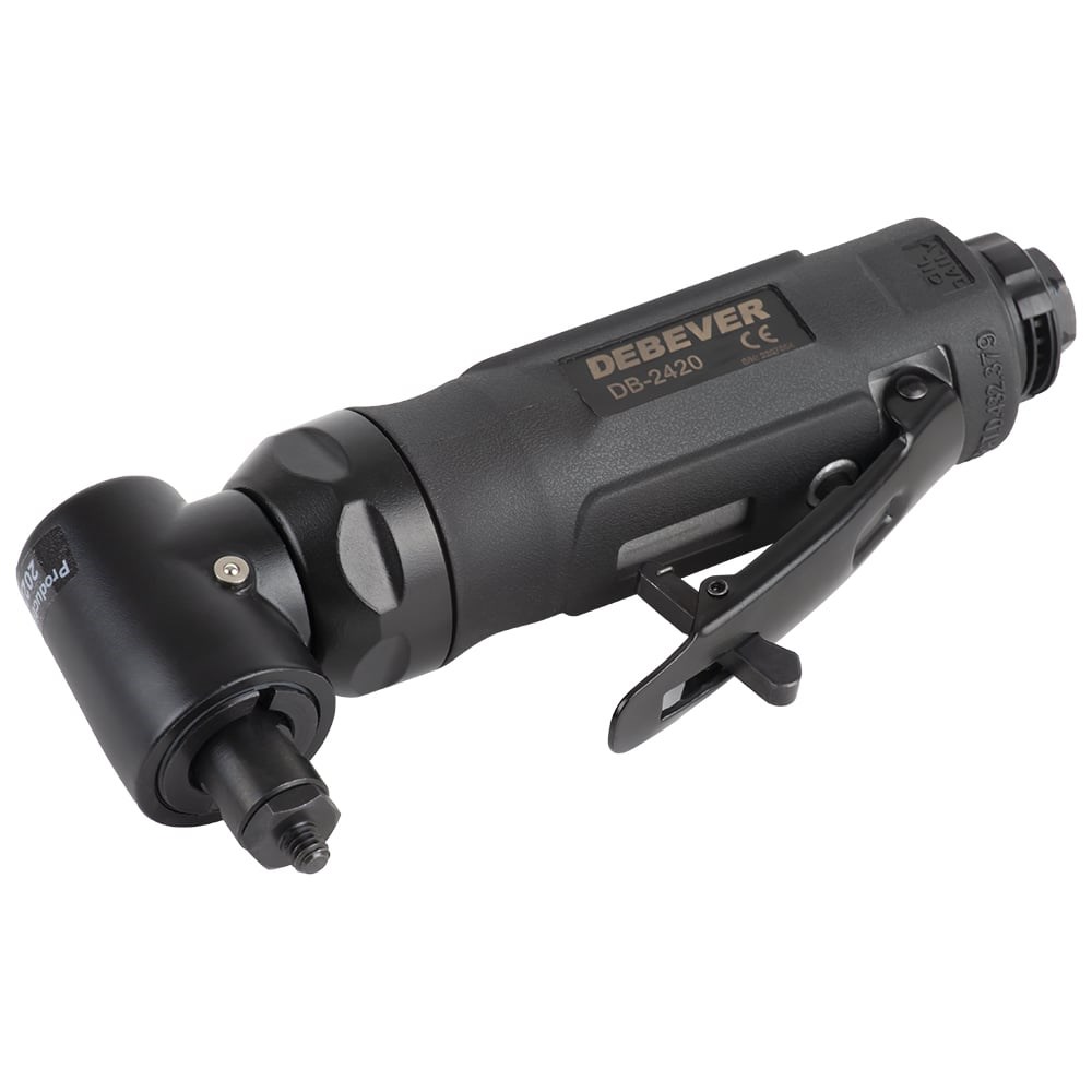 Пневматическая угловая машина с зажимной цангой под инструменты с быстросъемным креплением 50 мм применяется для удаления старой краски и шпатлевки, зачистки сварных швов, срезания металлических заусенцев, предварительной шлифовки дерева и металла перед тонкой обработкой. Для включения используется нажимной рычаг без фиксации, с возможностью экстренно отключить устройство во время работы. Универсальный инструмент для разных задач. Цанговый зажим позволяет устанавливать инструменты с быстросъемным креплением диаметром от 20 до 75 мм.Обрабатываемые материалы:металл, композитыОтрасль:машиностроение, металлообрабатывающая промышленность, строительный сектор, трубная промышленность, электроэнергетикаАртикул:DB-2420Скорость без нагрузки (об/мин.):15 000Мощность (кВт):0,37Шпиндель:5/16"Исполнение включения:рычаг с фиксаторомРасход воздуха (л/мин.):99Давление воздуха (бар):6,2Диаметр воздушного штуцера:1/4"Отвод воздуха:назадОбщая длина (мм):180Вес (кг):0,7