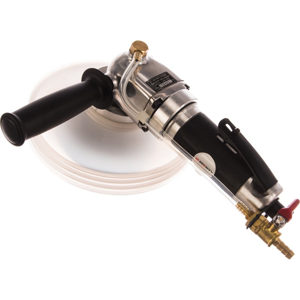 Угловая пневмошлифмашина с подачей воды Byemax BM-618W предназначена для качественной обработки каменных поверхностей. Защитный кожух предотвращает попадания пыли в оператора, обеспечивая безопасность. Модель работает на сжатом воздухе, что предусматривает внушительный рабочий ресурс и возможность длительное время работать без остановки. Пневмодвигатель отличается высокой производительностью и долгим сроком службы.