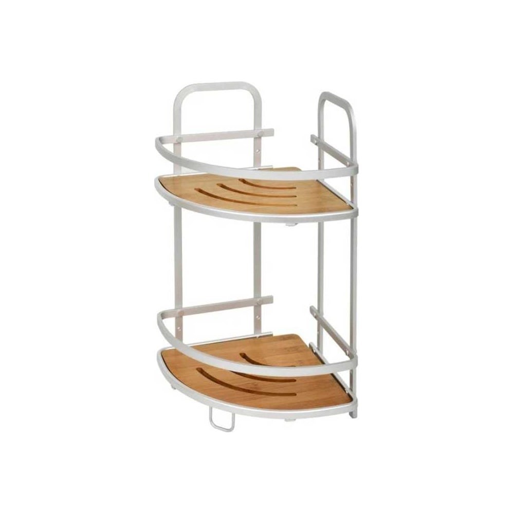 Двухъярусная угловая полка для ванной Gromell "SUMBA" изготовлена из алюминия и бамбука, не подвержена коррозии и устойчива к повышенной влажности. Может использоваться не только как навесной аксессуар в ванной комнате, но и как настольное решение для кухни.