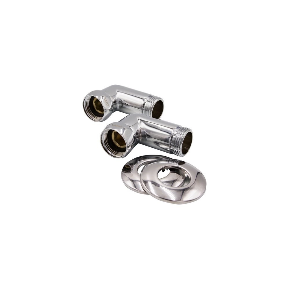 Угловое соединение для полотенцесушителя VRT 1-1, внутренняя/наружная, с отражателем, пара 534090 выполнено из латуни с хромированным покрытием, надежного, долговечного материала. Применяется для монтажа полотенцесушителя, имеет угловую форму. Диаметр подключения, дюйм: резьба внутренняя-наружная 1-1".