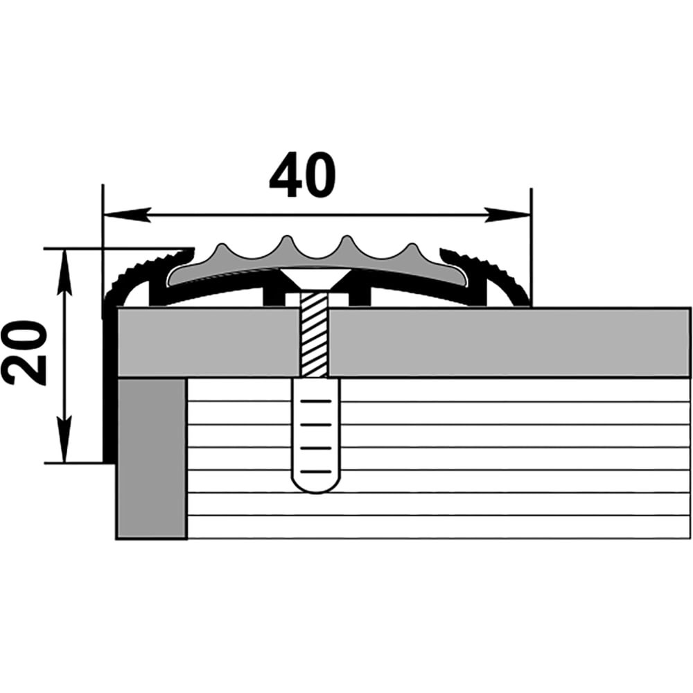 Порог угловой алюминиевый Лука 40x20 мм, 1,35 м, без покрытия, серая резинка УТ000023668