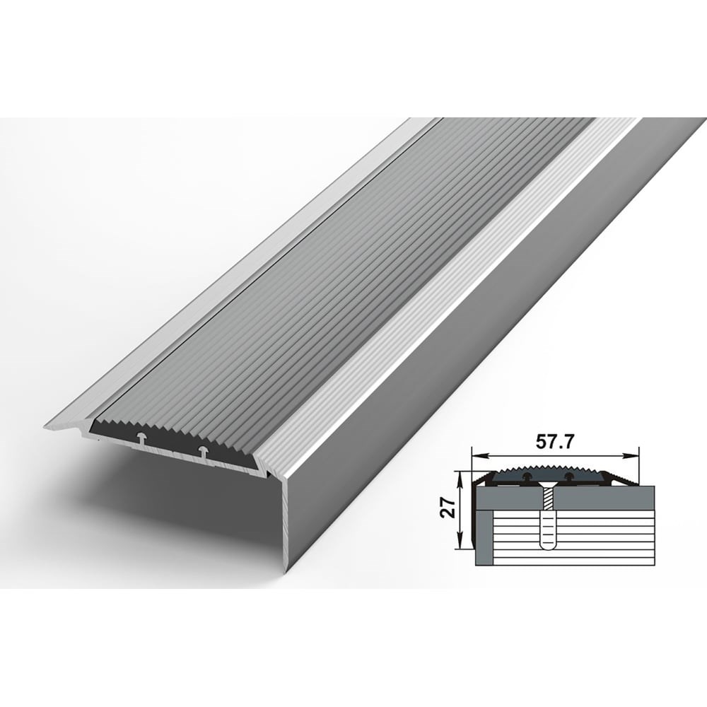 Порог угловой антискользящий алюминиевый ЛУКА (57,7х27 мм, 1,8 м, Без окраса) УТ000023732