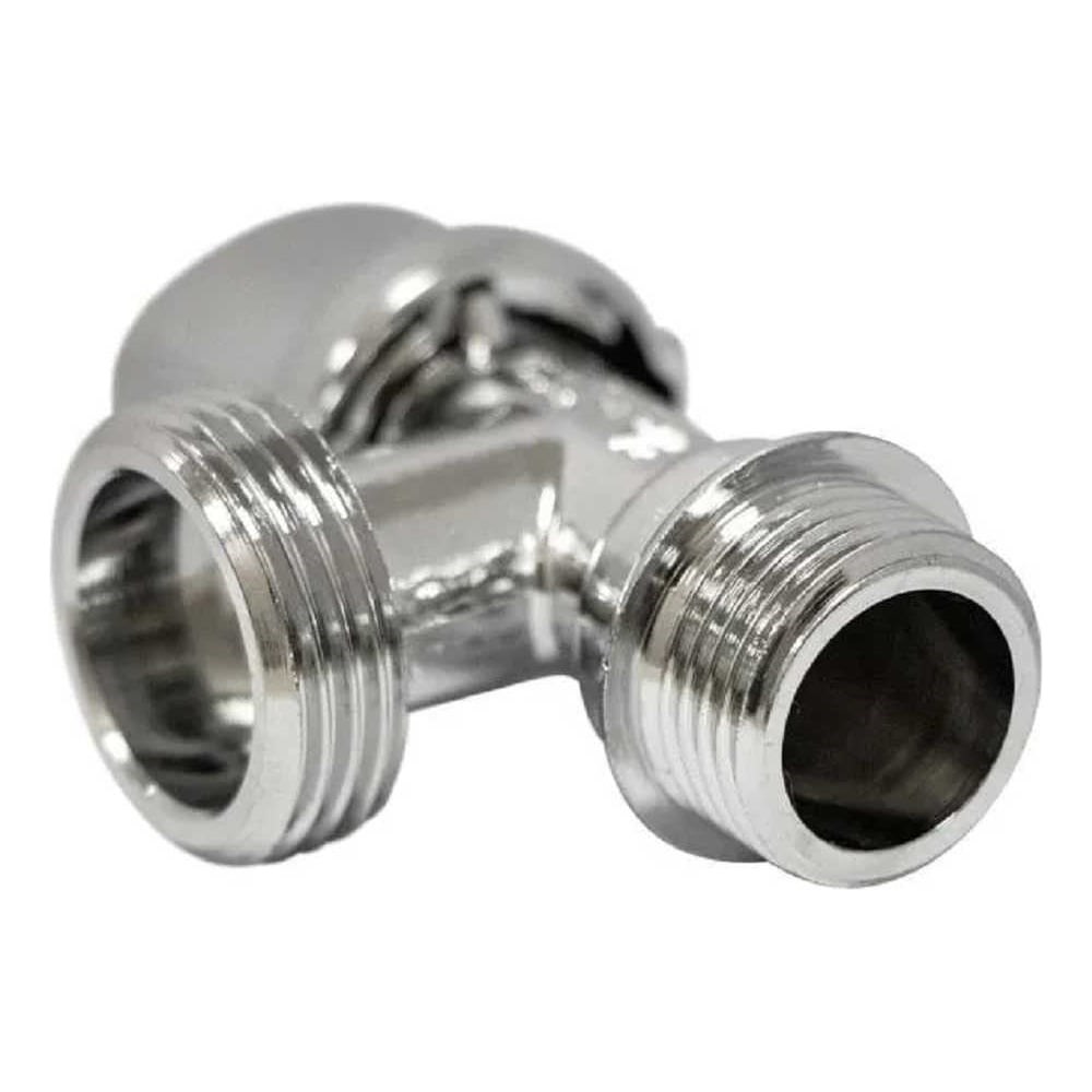 Кран выполнен из хромированной латуни и имеет наружную присоединительную резьбу 1/2' и 3/4' .Поворотный вентиль перекрывает поток воды с углом закрытия 90 градусов. Угловой кран устанавливается на магистраль питьевого водоснабжения для наполнения различных электрических устройств (стиральных и посудомоечных машин). Внешнюю герметичность изделия обеспечивает двойное кольцевое уплотнение штока, внутреннюю - специальное двойное уплотнение NBR.