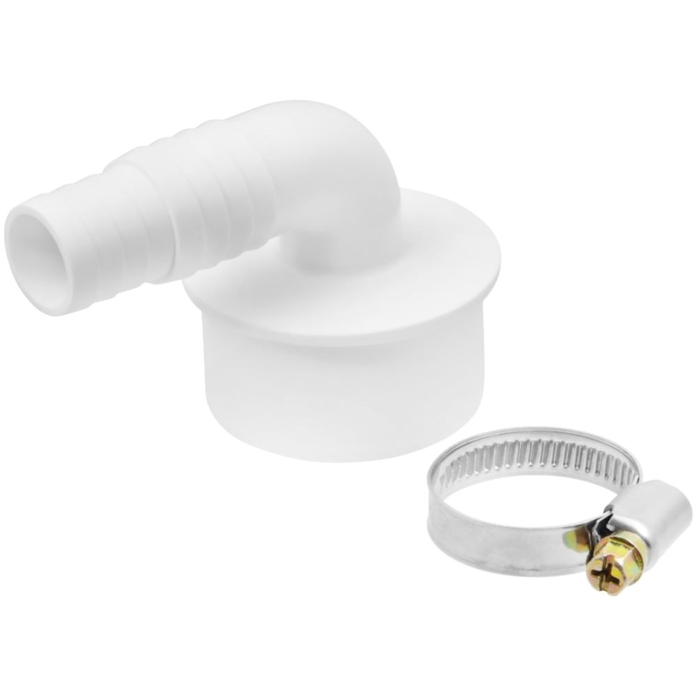 Штуцер угловой с хомутом для сливного шланга стиральных машин d50 - 19/22 мм MasterProf помогает присоединить сливной шланг к фитингу внутренней канализации, что обеспечивает слив воды из бытовой техники. Для прочности соединения сливного шланга с переходником рекомендуется укрепить соединение металлическим хомутом.Подключение к сливной трубе: 50 ммПодключение к сливному шлангу: елочка 19/22 мм (20/23)