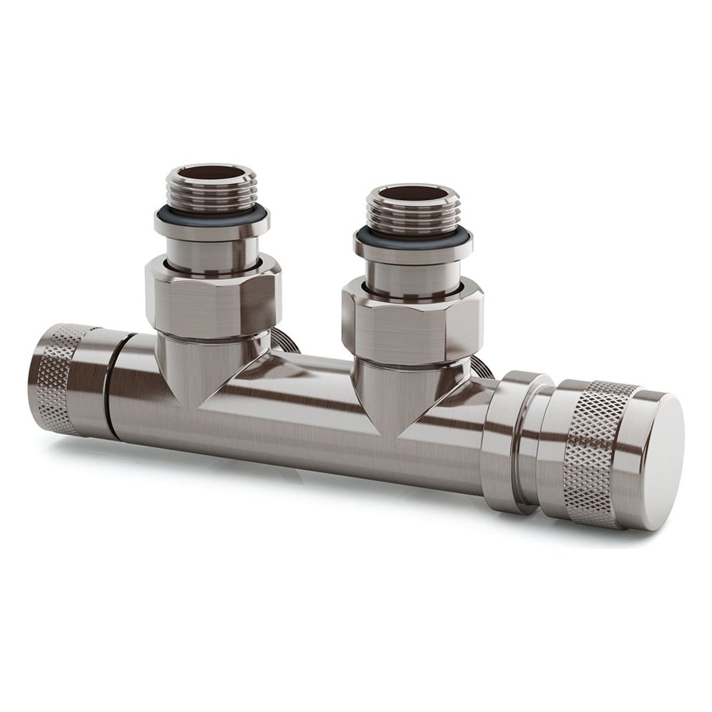 Узел нижнего подключения SR Rubinetterie угловой 1/2"х3/4"Е Никель матовый правый 0681-1500NSE0 включает в себя: вентиль ручной регулировки, преобразуемый в термостатический и запорный клапан, с механизмом предварительной настройки. Дополнительные характеристики: Рабочая среда - вода, гликолевые растворы. Максимальный процент гликоля - 30%. Максимальное рабочее давление -10 бар. Максимальная рабочая температура - 100°C. Минимальная устанавливаемая температура - 7°C. Корпус - штампованная латунь CW617N - UNI EN 12165. Маховик регулировки - прутковая латунь CW614N - UNI EN 12164. Гайка - штампованная латунь CW617N - UNI EN 12165. Плоский хвостовик - штампованная латунь CW617N - UNI EN 12165. Внутренние механизмы - прутковая латунь CW614N - UNI EN 12164. Колпачок запорного клапана - прутковая латунь CW614N - UNI EN 12164. Термостатическая защитная крышка - ABS. Уплотнение - EPDM PEROX.