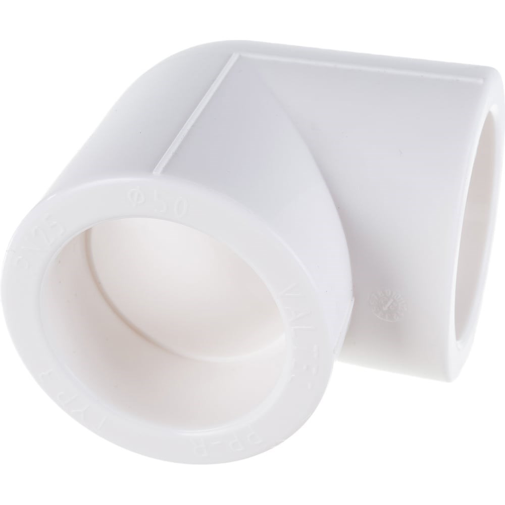 Угольник 90 PPR 50мм Valtec VTp.751.0.050 - полипропиленовый соединительный элемент, имеющий изогнутую форму под 90 градусов. Идеально подходит для создания контуров отопления или водоснабжения, а также технологических трубопроводов со средами, которые не агрессивны по отношению к пластику.