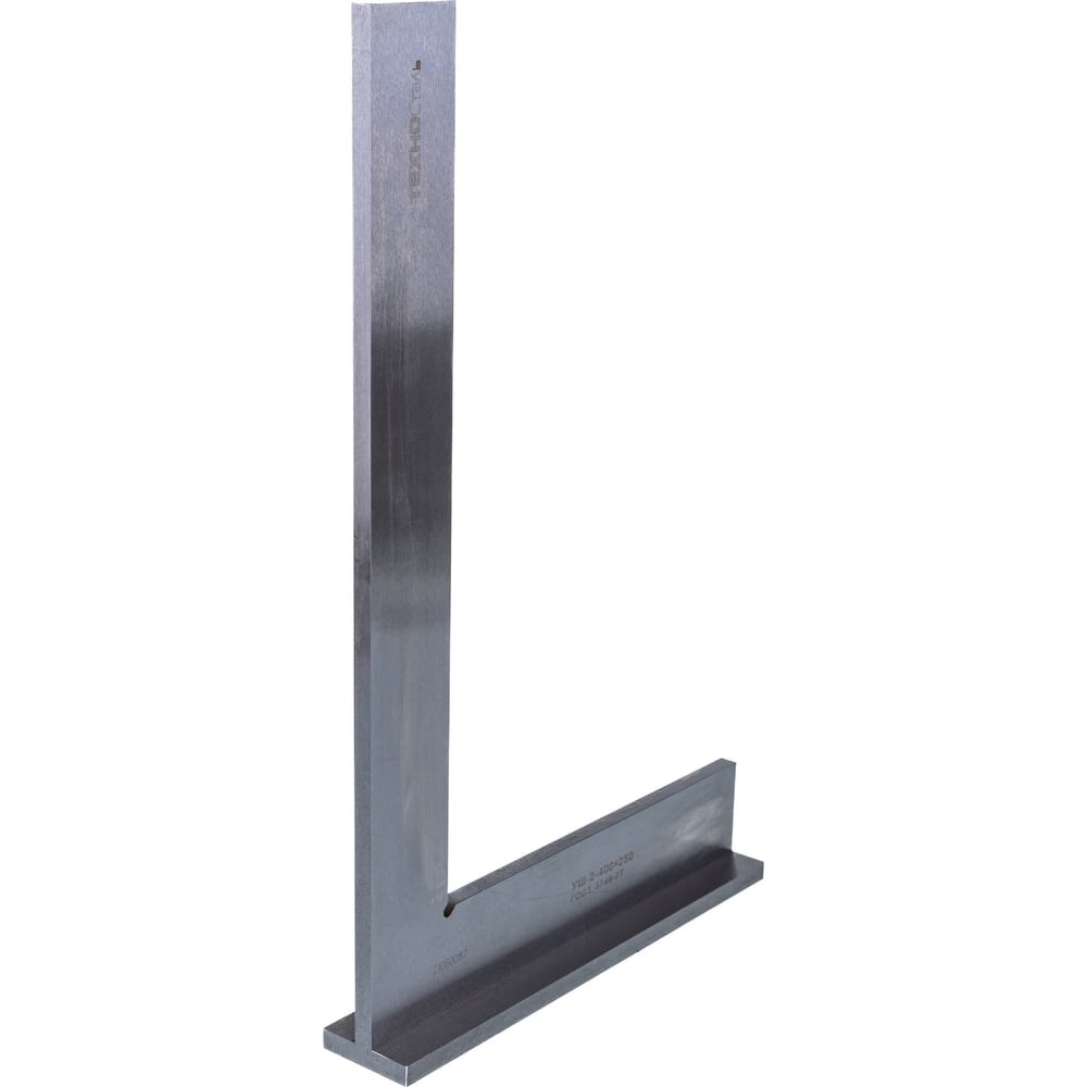 Угольник ТехноСталь УШ-2-400 400x250 ГОСТ 3749-77 F147009 предназначен для проверки прямых углов и применяется для контроля перпендикулярного расположения деталей с высокой точностью. Имеет заостренные измерительные поверхности и плоские опорные поверхности. Угольник изготовлен из прочной инструментальной стали.
