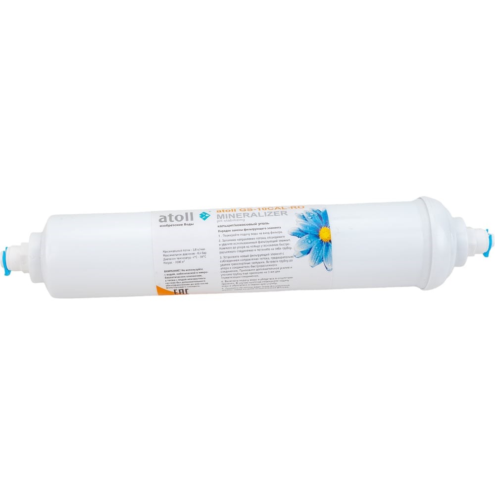 Угольный постфильтр-минерализатор Atoll GS-10CAL-RO ATECRT321 — картридж стандарта Inline с быстросъемными соединениями 1/4" дюйма, используется в системах обратного осмоса в качестве последней ступени очистки воды. Повышает ph, улучшает вкус воды, не образует накипи. Фильтрующий материалы: специально обработанный кокосовый уголь, кальцит. Номинальный поток: 3,8 л/мин. Ориентировочный ресурс: 7 000 л. Рекомендуемый срок замены — 6 месяцев.